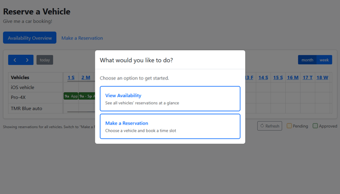 - Make a Reservation — Choose a vehicle and book a time slot