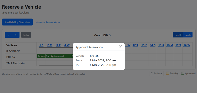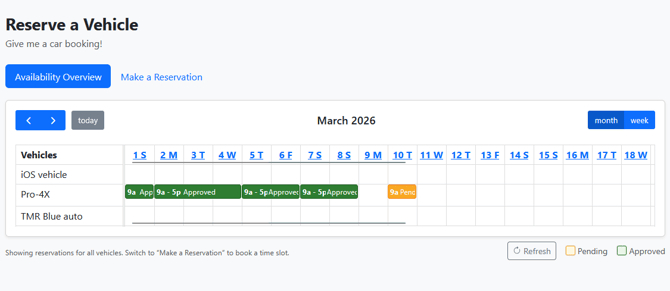 - View Availability — See all vehicles' reservations at a glance